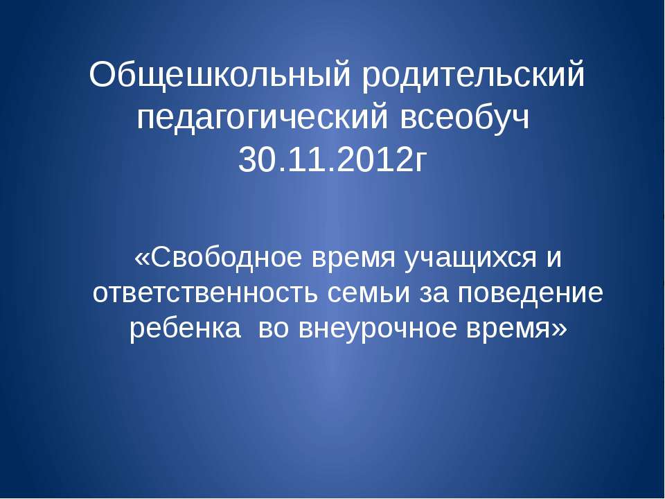 Общешкольный родительский педагогический всеобуч 30.11.2012г «Свободное время учащихся и ответственность семьи за поведение ребенка во внеурочное время»