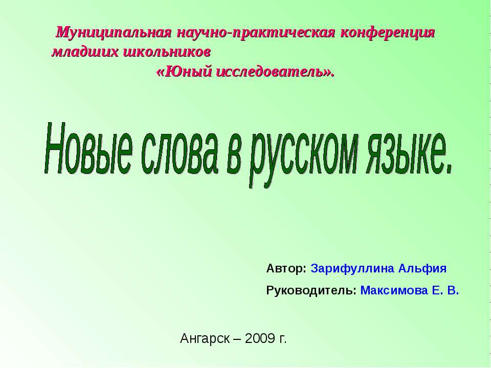 Муниципальная научно-практическая конференция младших школьников «Юный исследователь». Автор: Зарифуллина Альфия Руководитель: Максимова Е. В. Ангарск – 2009 г.