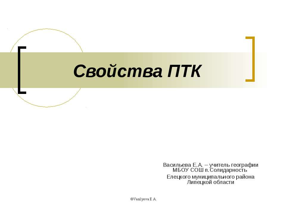 Свойства ПТК Васильева Е.А. – учитель географии МБОУ СОШ п.Солидарность Елецкого муниципального района Липецкой области ©Vasilyeva E.A.