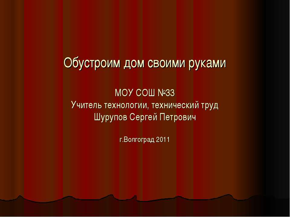 Обустроим дом своими руками МОУ СОШ №33 Учитель технологии, технический труд Шурупов Сергей Петрович г.Волгоград 2011